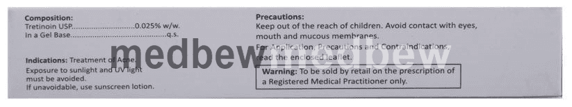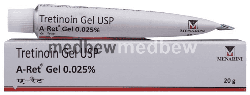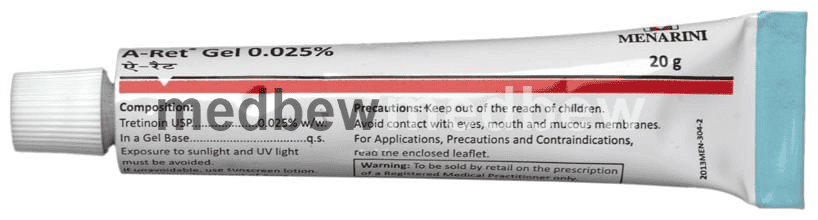 A-Ret 0.025% Gel is a form of vitamin A that is used to treat acne which appears as spots or pimples on your face, chest, or back. It also helps to smooth rough facial skin and to reduce fine wrinkles on the skin.