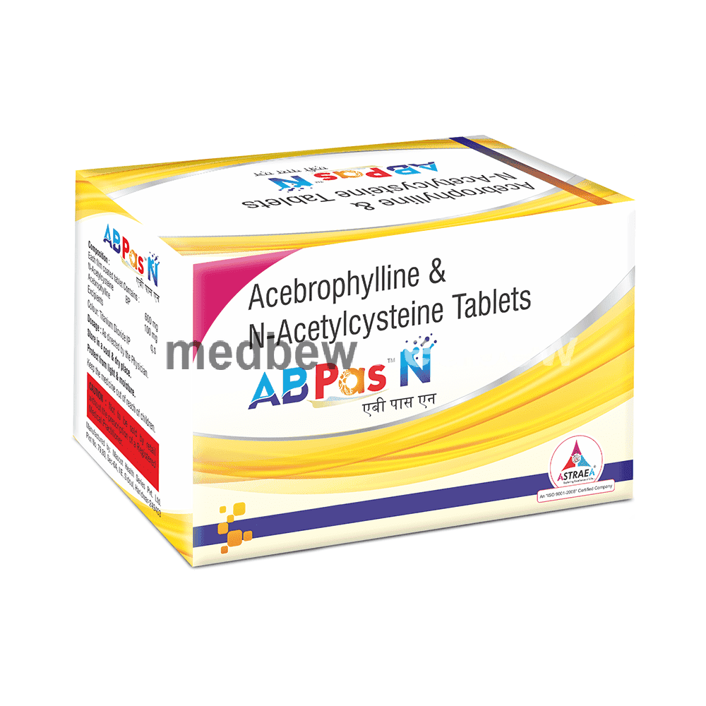 AB Pas N Tablet is used to treat and prevent symptoms of chronic obstructive pulmonary disorder (a lung disorder in which the flow of air to the lungs is blocked) such as coughing, wheezing, and shortness of breath. It helps relax the muscles of the air passages thereby making it easier to breathe.