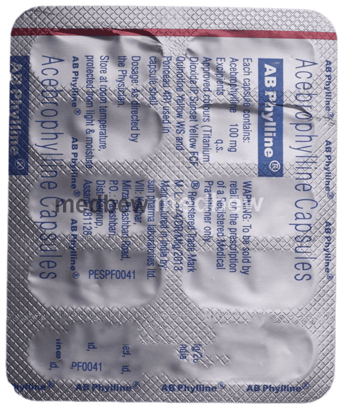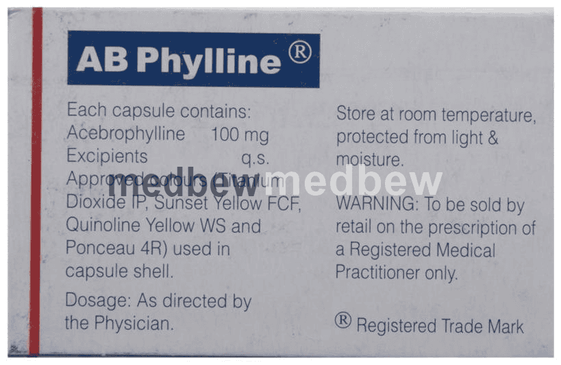 AB Phylline Capsule is used to treat and prevent symptoms of asthma and chronic obstructive pulmonary disorder (a lung disorder in which flow of air to the lung is blocked). It helps in relaxing the muscles of the air passages, thus widening it and making it easier to breathe.