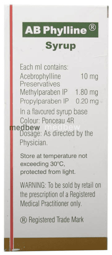 AB Phylline Syrup is used to treat and prevent symptoms of asthma and chronic obstructive pulmonary disorder (a lung disorder in which flow of air to the lung is blocked). It helps in relaxing the muscles of the air passages, thus widening it and making it easier to breathe.