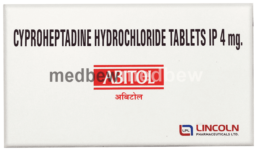 Abitol Tablet belongs to a group of medicines called antihistamines. It is used in the treatment of various allergic conditions. It relieves symptoms of inflammation as well as itching, swelling and rashes. It is also used to treat loss of appetite (need for food). It is an effective hunger stimulant.