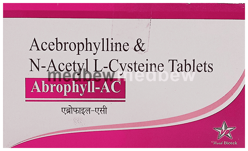 Abrophyll-AC Tablet is used to treat and prevent asthma and symptoms of chronic obstructive pulmonary disorder (a lung disorder in which the flow of air to the lungs is blocked) such as coughing, wheezing, and shortness of breath. It helps relax the muscles of the air passages thereby making it easier to breathe.