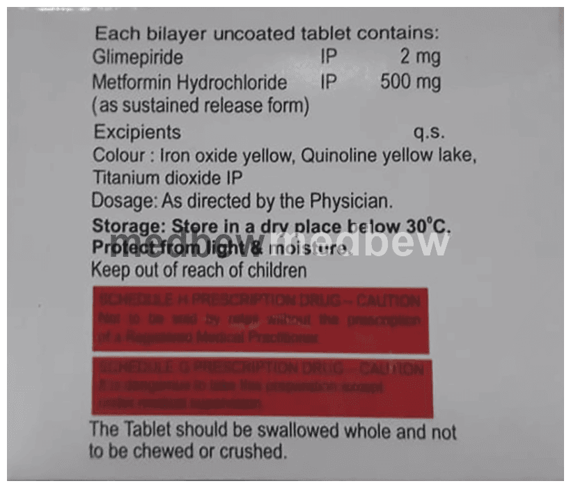 Composition Glimepiride (2mg) + Metformin (500mg)