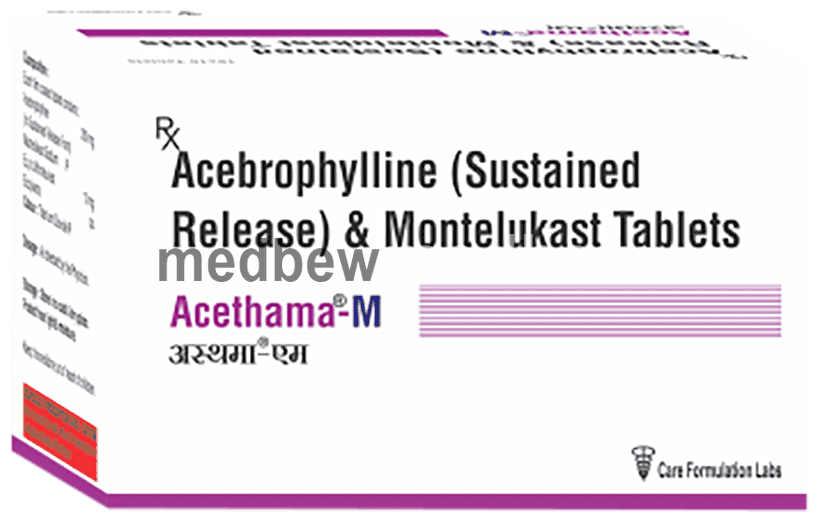 Acethama-M Tablet SR helps prevent and treat asthma and chronic obstructive pulmonary disorder (COPD). It may also help relieve allergy symptoms such as runny and stuffy nose, sneezing, watery eyes, congestion, or stuffiness. It helps relax the muscles of the air passages thereby making it easier to breathe.