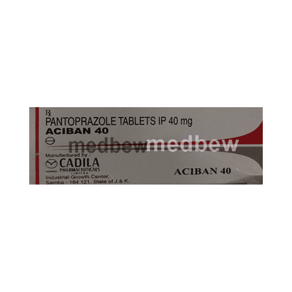 Aciban 40 Tablet is used for the treatment of peptic ulcer disease, reflux esophagitis or gastroesophageal reflux disease (GERD). Aciban 40 Tablet prevents acidity associated with use of painkillers. It is also used to treat a disease associated with excessive acid production in the stomach known as Zollinger Ellison syndrome (ZES). It works by reducing the amount of acid made by your stomach and thus relieves your symptoms.