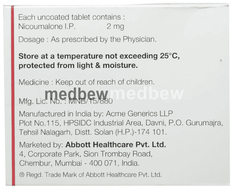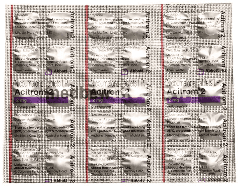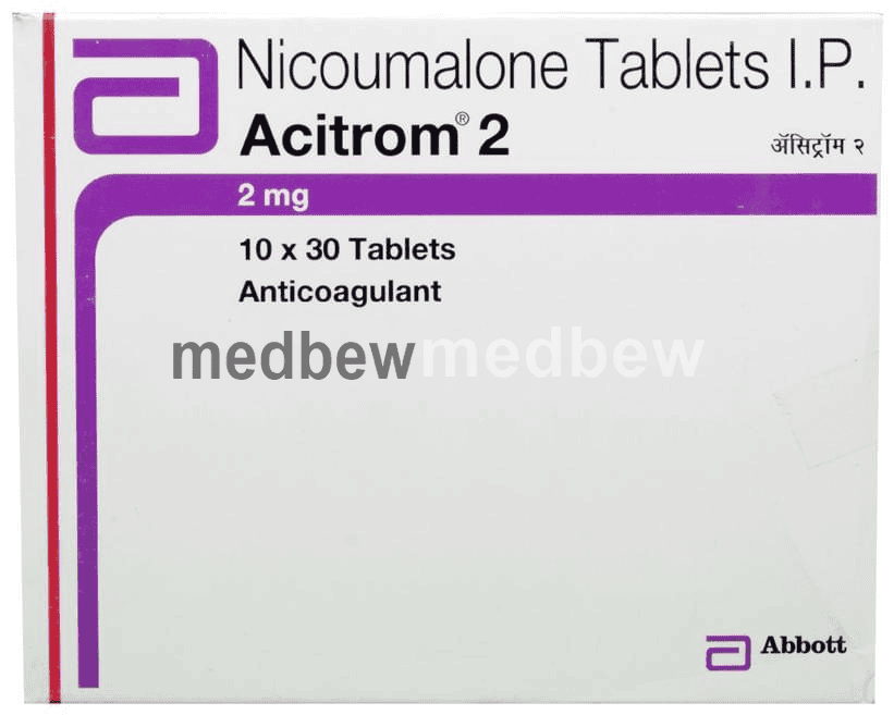 Acitrom 2 Tablet is an oral anticoagulant that helps prevent harmful blood clots in the legs, lungs, brain, and heart. It is used for deep vein thrombosis, pulmonary embolism, and stroke prevention.