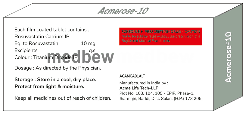 Acmerose 10 Tablet belongs to a group of medicines called statins. It is used to lower cholesterol and to reduce the risk of heart disease. Cholesterol is a fatty substance that builds up in your blood vessels and causes narrowing, which may lead to a heart attack or stroke.