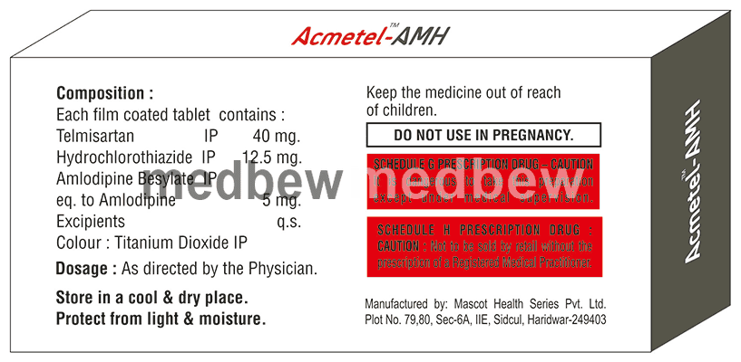 Acmetel-AMH Tablet is a combination of medicines used to treat hypertension (high blood pressure) when a single medication is not effective. It helps to lower high blood pressure thus reduces chances of future heart attack and stroke.