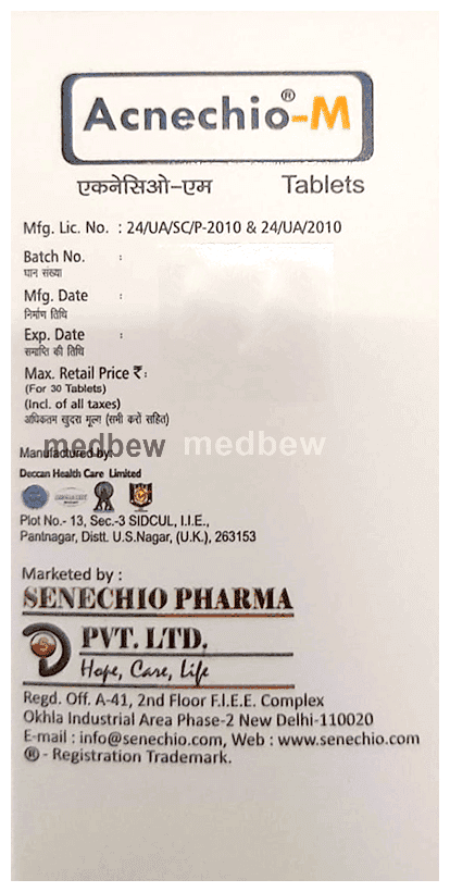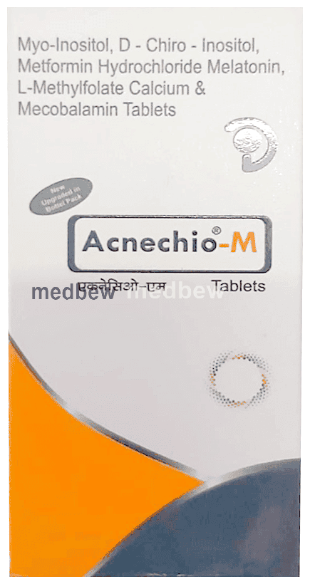 Women with Polycystic ovarian syndrome (PCOS) have hormonal imbalance that is responsible for irregular menstrual cycles (periods), excessive hair growth and acne. Acnechio-M Tablet is a combination medicine that helps in regulating hormonal imbalance as well as periods in females. It helps the body to utilise the hormone insulin and also regulates menstrual cycles. Take it as prescribed by the doctor. Do not skip any doses and follow your doctor’s instructions carefully to get maximum benefit.