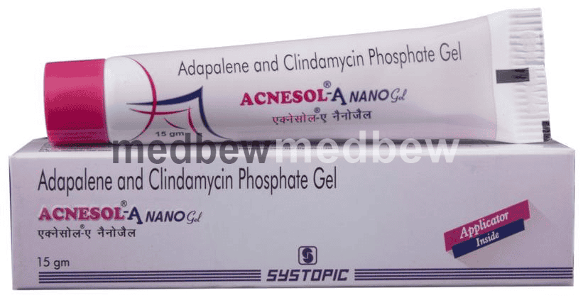 Acnesol A Nano Gel is a combination of two medicines that effectively treats acne. It minimizes oil production and helps to reduce inflammation. It also kills acne-causing microorganisms and prevents infection. This helps to prevent pimples, blackheads, and whiteheads on the skin.