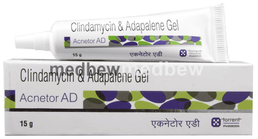 Acnetor AD Gel is a combination of two medicines that effectively treats acne. It minimizes oil production and helps to reduce inflammation. It also kills acne-causing microorganisms and prevents infection. This helps to prevent pimples, blackheads, and whiteheads on the skin.