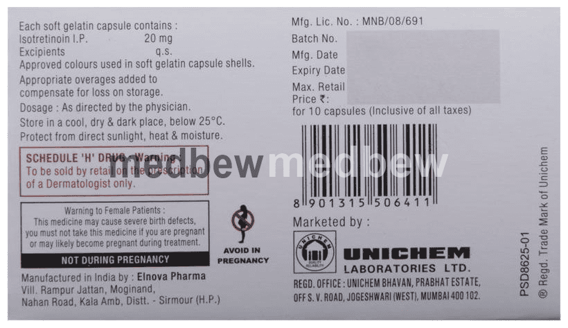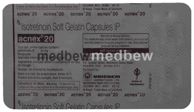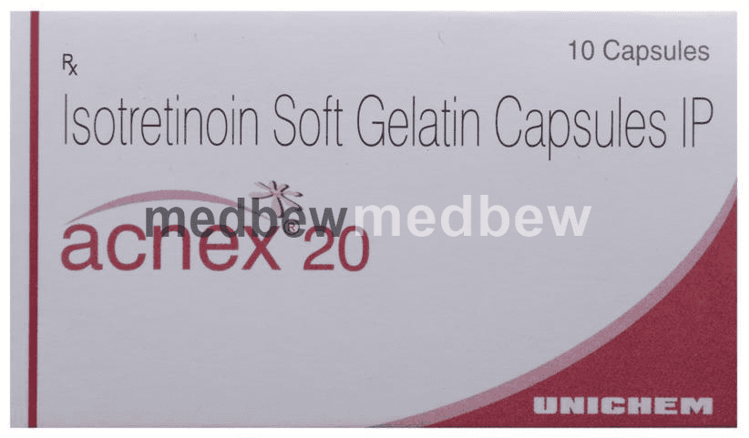 Acnex 20 Capsule belongs to a group of medicines called retinoids (vitamin A derivative). It is used to treat severe acne that has not responded to other treatments.