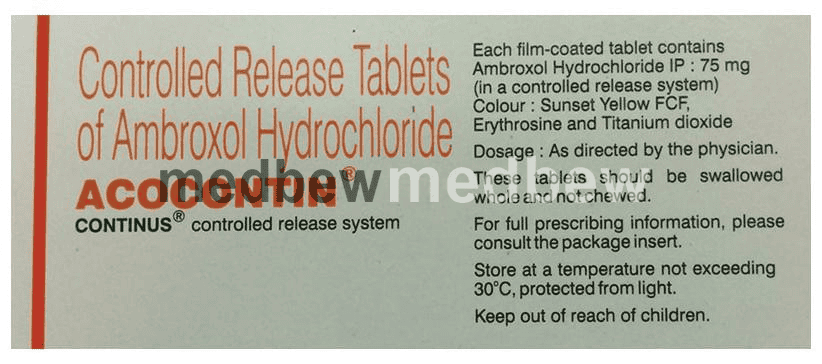 Acocontin Tablet CR is used for treating various respiratory tract disorders associated with excessive mucus. It works by thinning and loosens mucus in the nose, windpipe, and lungs and make it easier to cough out.