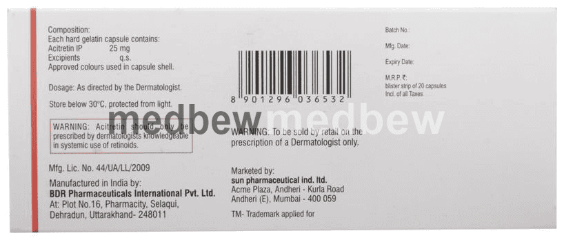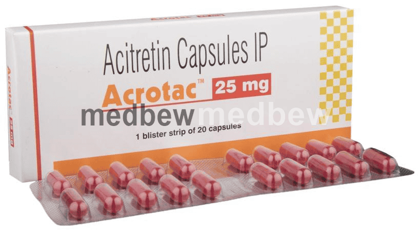 Acrotac 25mg Capsule is a medicine that is similar to vitamin A and is involved in the normal growth of skin cells. It is used in the treatment of psoriasis. It works by stopping the overgrowth and thickening of skin cells.