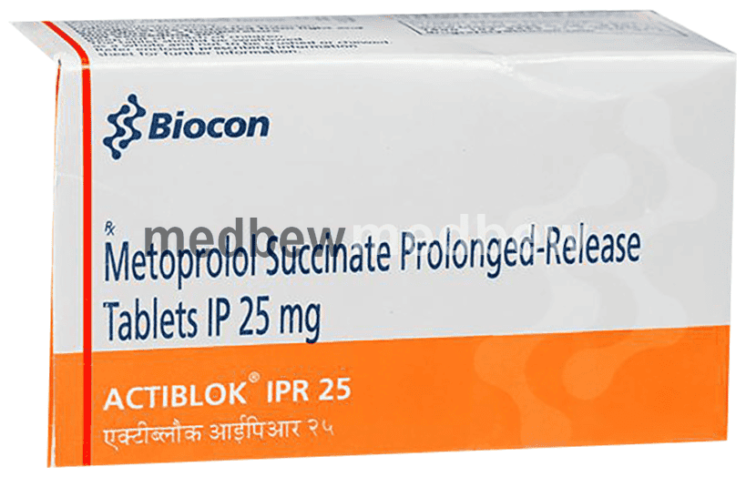 Actiblok IPR 25 Tablet belongs to a group of medicines called beta-blockers. It is used to treat high blood pressure (hypertension), angina (heart-related chest pain), and irregular heart rhythms (arrhythmia). It also helps to prevent migraines, future heart attacks, and stroke.