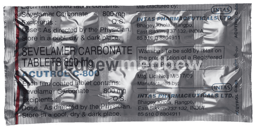 Acutrol C 800 Tablet is used to treat increased phosphate levels in the blood. It is used in patients who are on dialysis due to severe kidney disease. It inhibits the absorption of phosphate from the intestine and lowers the phosphate levels in the blood.