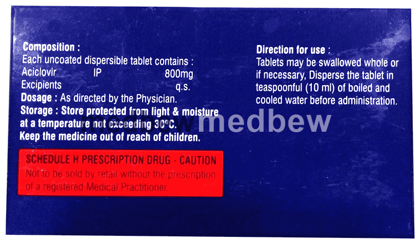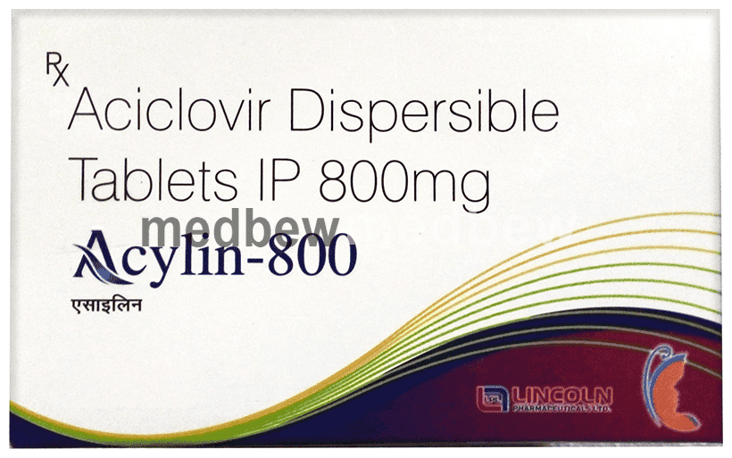 Acylin 800 Tablet DT is an antiviral medicine. It helps in treating viral infections like herpes labialis, herpes simplex, shingles, genital herpes infection, and chickenpox. It prevents the multiplication of virus in human cells and therefore helps in clearing the infection.
