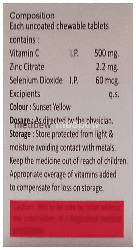 Composition Vitamin C (500mg) + Zinc (2.2mg) + Selenium dioxide (60mcg)