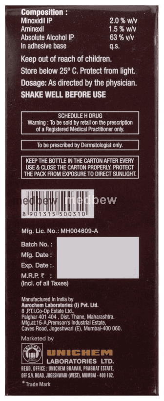 Adhair 2% Solution is used to treat hair loss. It works by increasing blood flow to the hair follicles which further prevents hair loss and stimulates re-growth resulting in longer, thicker and increased numbers of hair.