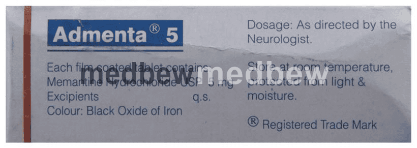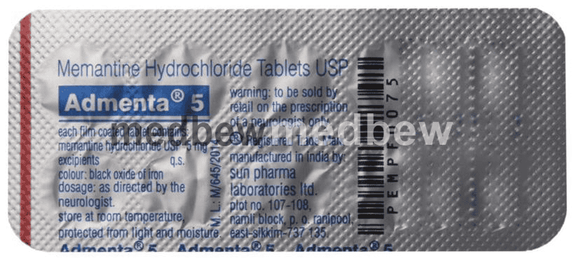 Admenta 5 Tablet is a medicine used in the treatment of Alzheimer’s disease. It helps to slow down the progression of moderate to severe Alzheimer’s by improving memory and thinking. This medicine works by blocking a chemical messenger involved in the transmission of nerve signals.