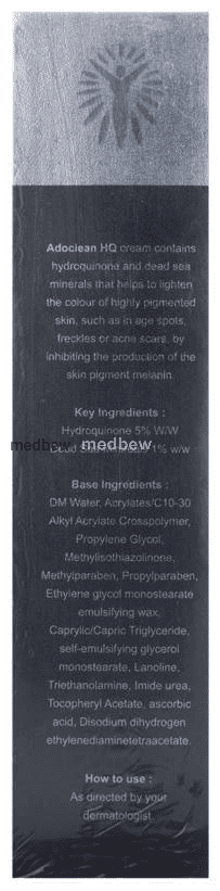 Adoclear HQ Cream is used in the treatment of melasma. It is a skin-lightening medicine that lightens the darkened skin patches and spots(hyperpigmentation). It reduces the amount of skin-darkening pigment called melanin in the skin. It helps in reversible depigmentation of the skin.