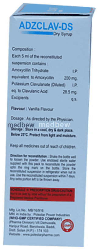 Home » ANTI INFECTIVES » Adzclav-DS Dry Syrup