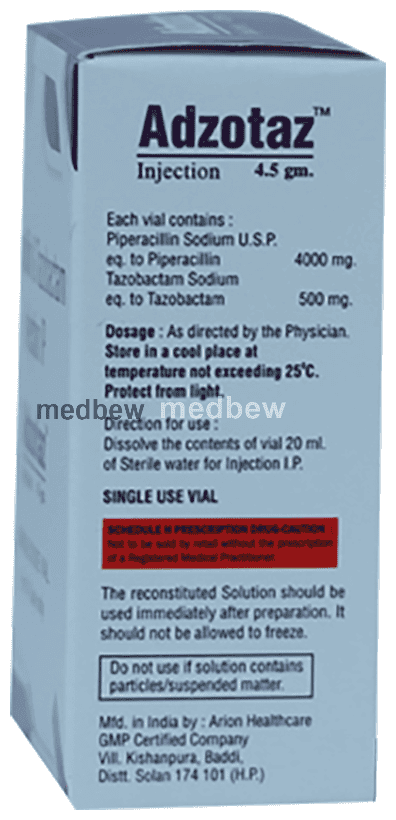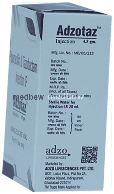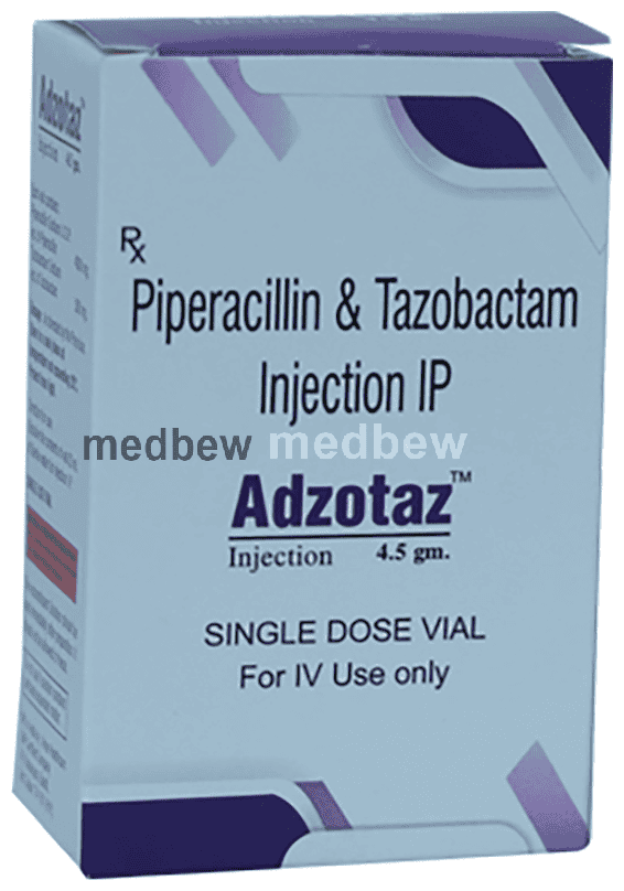 Adzotaz 4.5gm Injection is a combination of two antibiotics. It is used to treat various types of bacterial infections. It fights against the infection by killing the microorganisms.