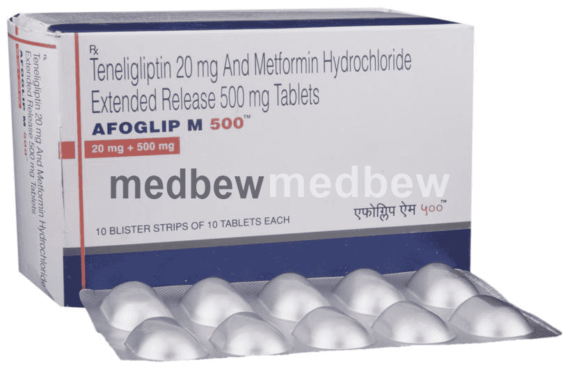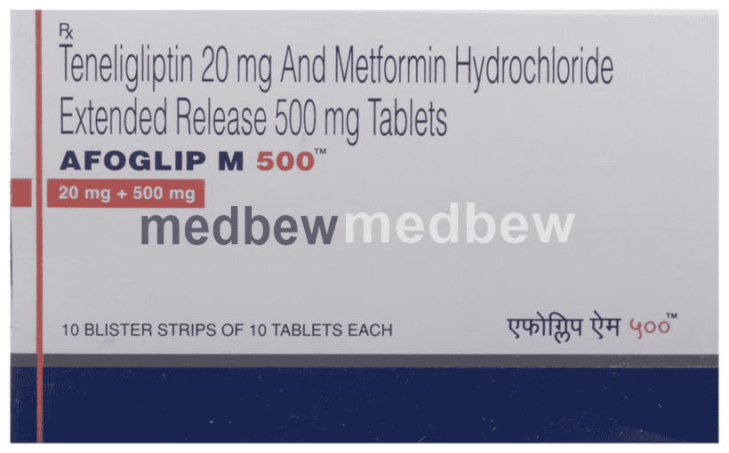 Afoglip M 500 Tablet ER is an anti-diabetic medication (biguanide). It works by lowering glucose production in the liver, delaying the absorption of sugar (glucose) from the intestines, and increasing the body’s sensitivity to insulin.