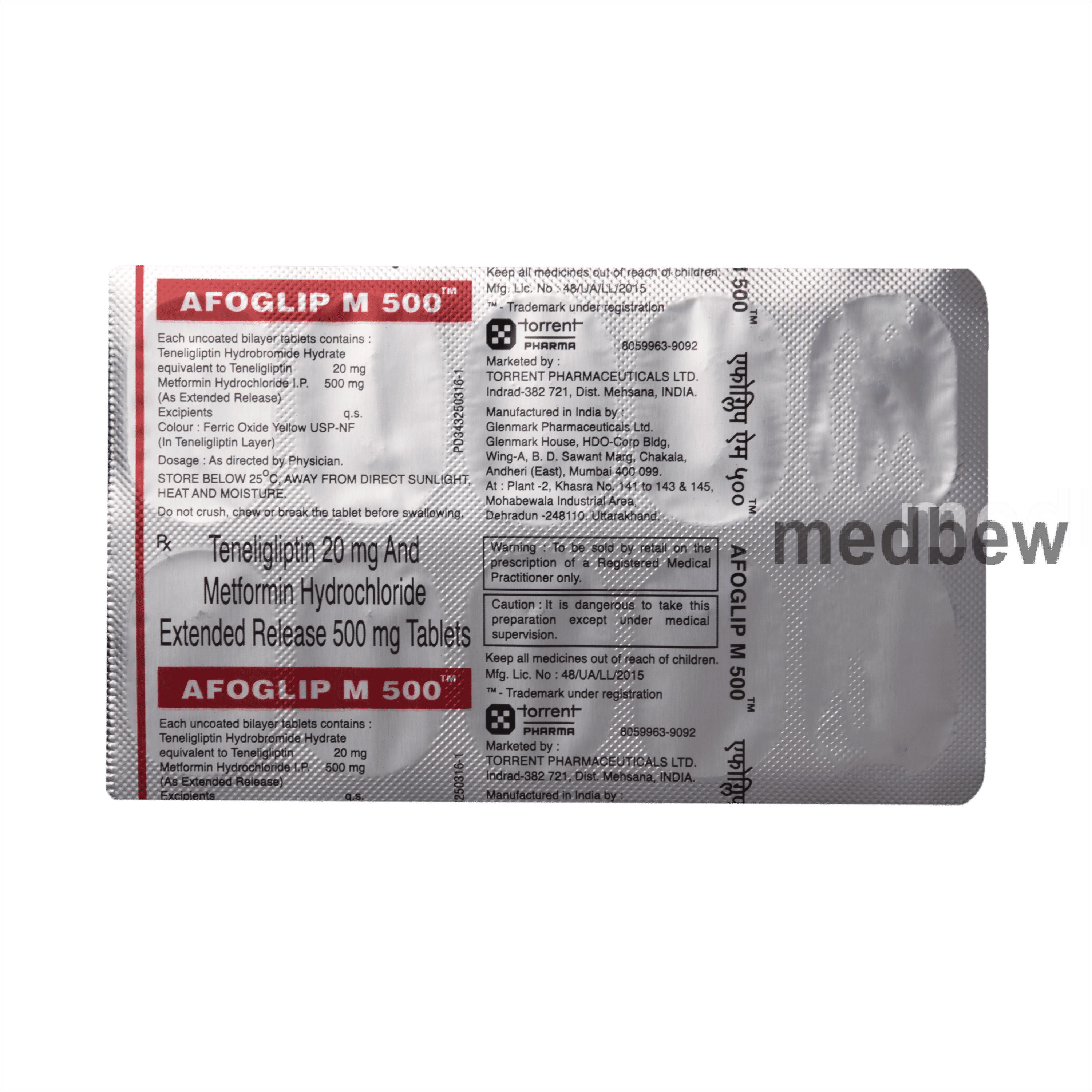 Afoglip M 500 Tablet ER is a combination of two medicines that control high blood sugar levels in people with type 2 diabetes mellitus. This helps prevent serious complications of diabetes such as kidney damage and blindness and may also reduce your chances of having a heart attack or stroke.