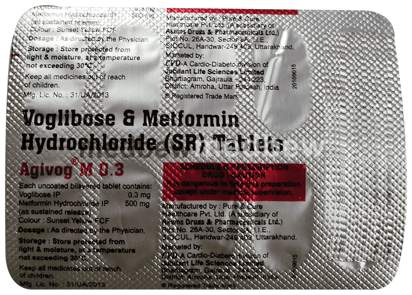 Agivog M 0.3 Tablet SR belongs to a category of medicines known as anti-diabetic drugs. It is a combination of medicines used to treat type 2 diabetes mellitus in adults. It helps control blood sugar levels in people with diabetes.