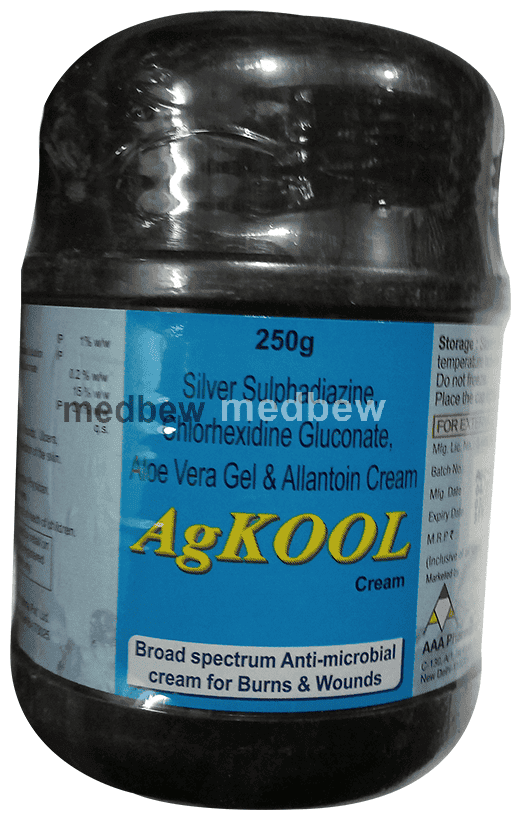 Agkool Cream is a combination medicine used to treat burns and wound infection. It moisturizes and relieves minor skin irritations by forming a protective layer on the skin. It works by stopping the growth of microorganisms and killing the existing ones that cause the infection.