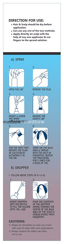 Take care that AIWO Minoxidil 5% Topical Solution does not trickle down onto your face as it may cause undesirable facial hair growth.