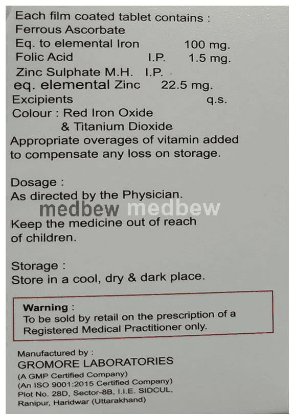 Composition Ferrous Ascorbate (100mg) + Folic Acid (1.5mg)