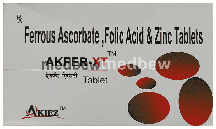 Akfer-XT Tablet is a combination of two nutritional supplements: Ferrous Ascorbate and Folic Acid which replenish the body’s stores of important nutrients.