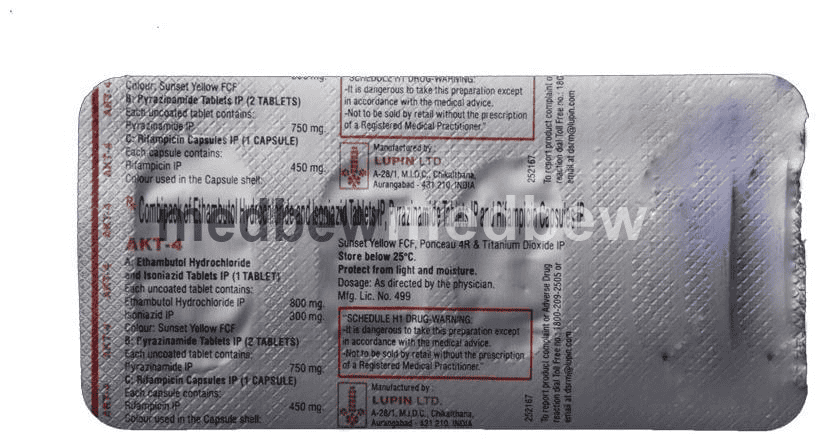 Akt 4 Kit is a combination medicine used in the treatment of tuberculosis. It prevents the growth of the microorganisms that cause the infection.