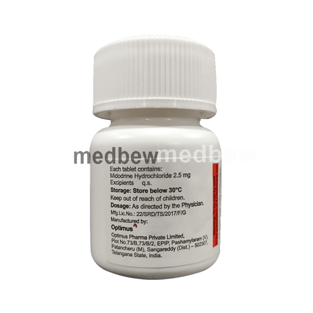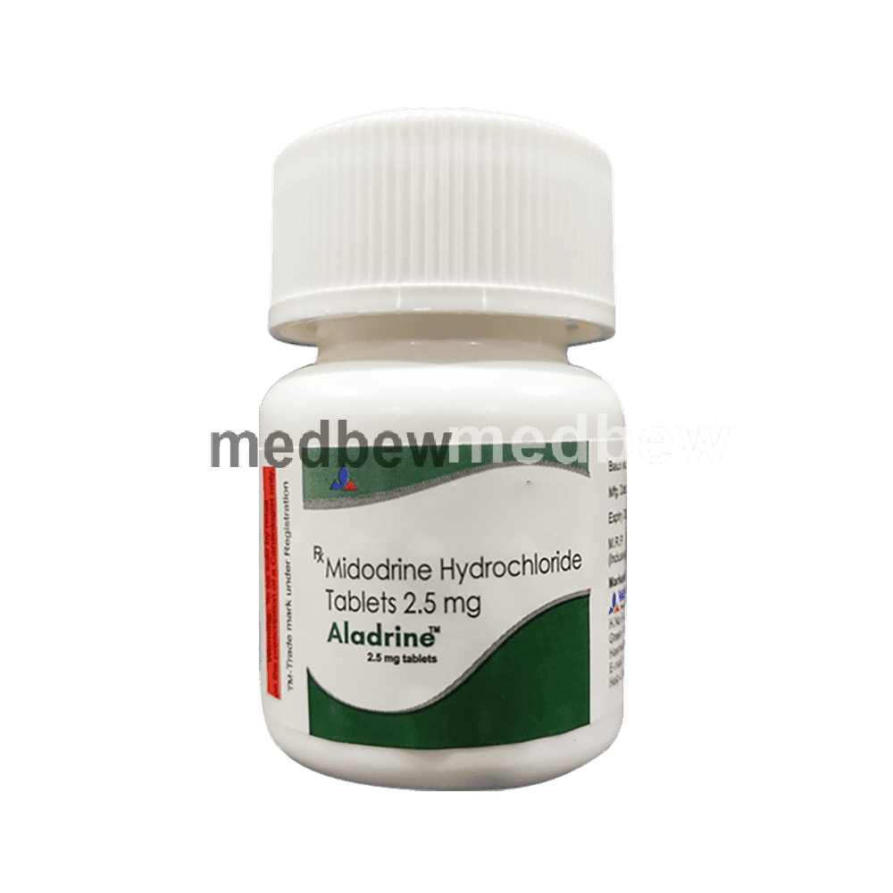 Aladrine 2.5mg Tablet is used to treat low blood pressure (hypotension). It is used in patients who experience dizziness due to low blood pressure while standing up suddenly from sitting or lying position. This medicine causes tightening of blood vessels and results in elevating your blood pressure.
