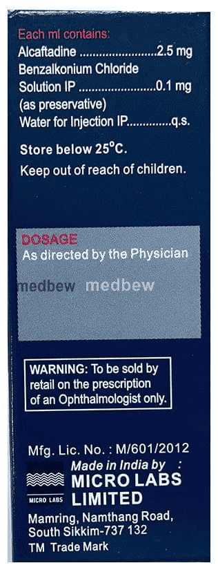 Alcaft Eye Drop is an antihistaminic medication. It is used to treat inflammation of eyes (redness and swelling) caused due to various allergies. It helps in short-term or sudden allergic reactions in the eye.