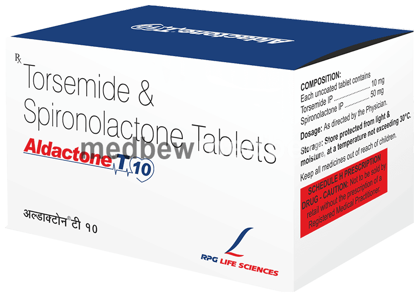 Aldactone T 10 Tablet is a combination of two medicines used to reduce excess fluid levels in the body while maintaining the potassium balance. It is used to treat edema (fluid overload) and some cases of hypertension.