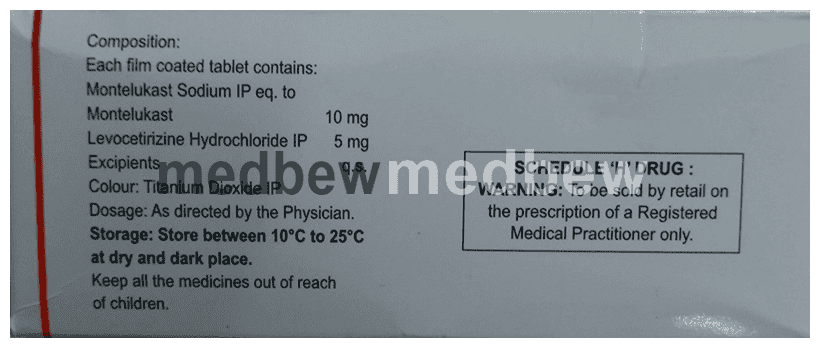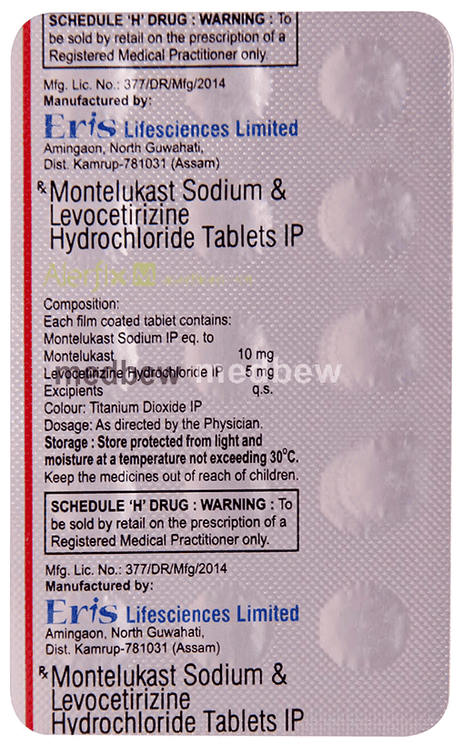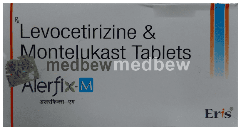Alerfix-M Tablet is a combination medicine used in the treatment of allergic symptoms such as runny nose, stuffy nose, sneezing, itching, swelling, watery eyes and congestion or stuffiness. It also reduces inflammation in the airways and make breathing easier.