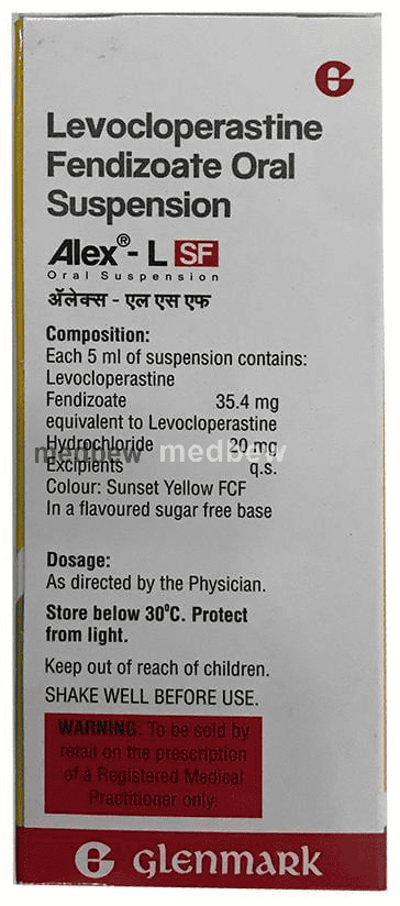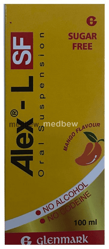 Alex-L Cough Syrup Mango Sugar Free is an antitussive medicine. It is used for the treatment of dry cough. It suppresses the cough by reducing the activity of the cough center in the brain.