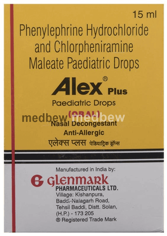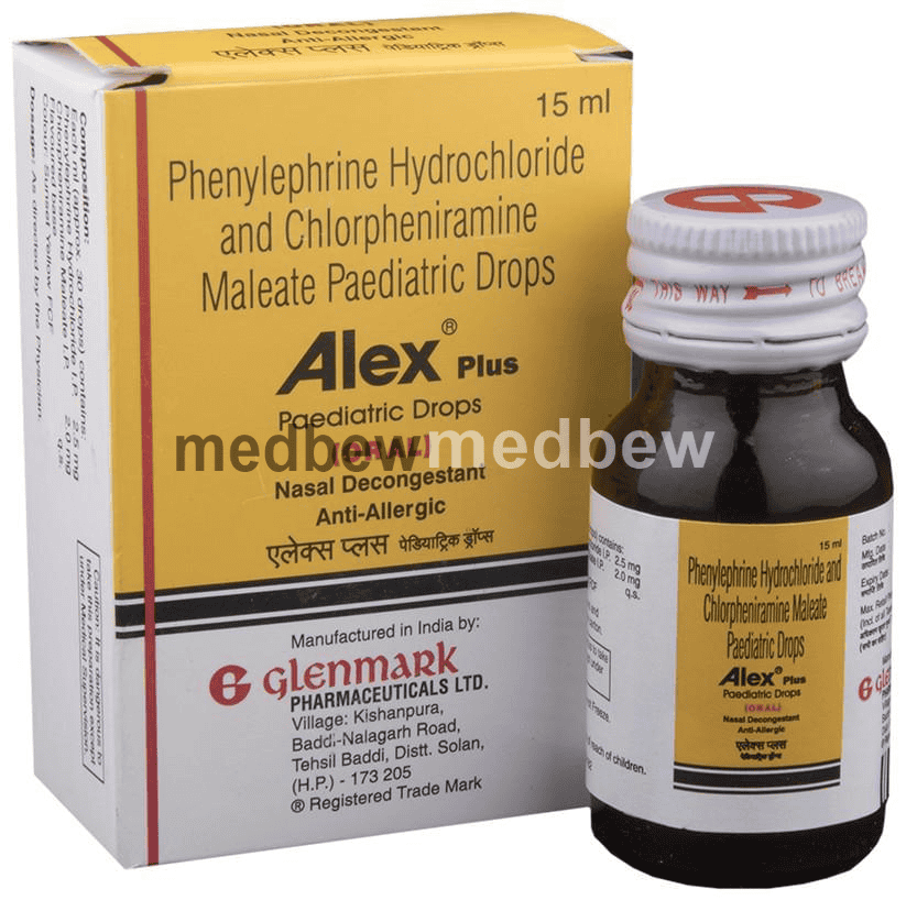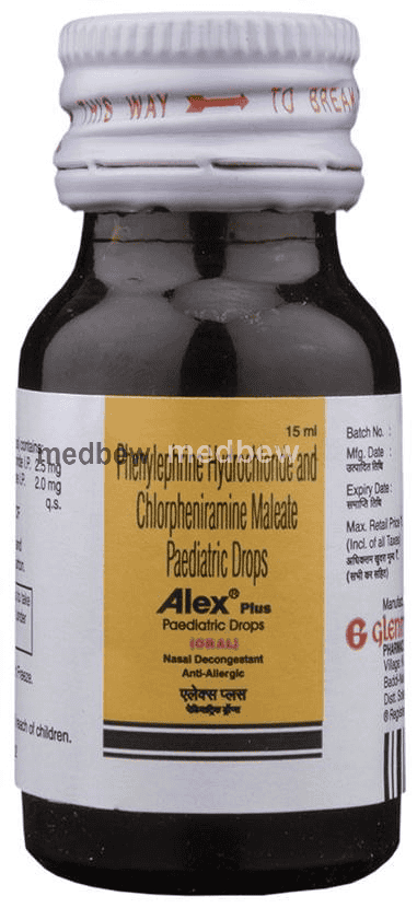 Alex Plus Paediatric Oral Drops is a combination medicine used in the treatment of common cold symptoms. It relieves allergy symptoms such as runny nose, stuffy nose, sneezing, watery eyes and congestion or stuffiness.