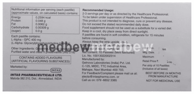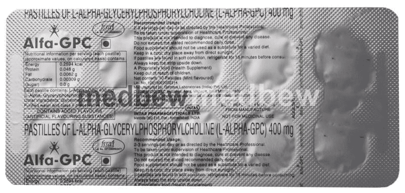Alfa GPC Pastilles is a plant-based fatty acid. It is used as a nutritional supplement that may help improve neurological health.