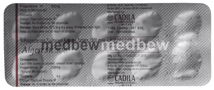 Algest SR 300 Tablet is a type of progesterone hormone which is extracted from plants, but its property matches with the human progesterone. This medicine undergoes a process called micronization where the size of the natural progesterone is reduced. The small size of the progesterone particles enhances its dissolution and absorption. This provides better availability of Algest SR 300 Tablet in the body and decreases its side effects.