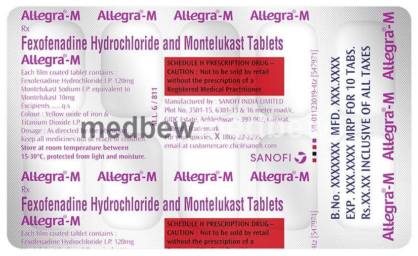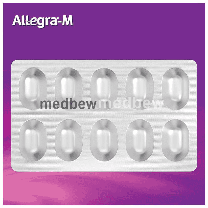 Allegra-M Tablet is a combination medicine used in the treatment of allergy symptoms such as runny nose, stuffy nose, sneezing, watery eyes and congestion or stuffiness.