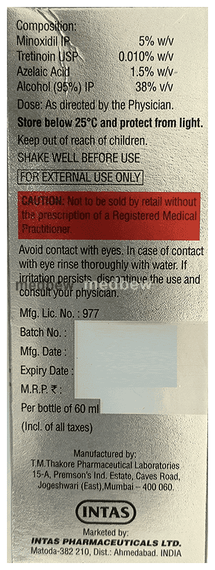 Aloatm 5% Solution is a combination medicine used in the treatment of hair loss. It works by increasing blood flow to the hair follicles which further prevents hair loss and stimulates re-growth resulting in longer, thicker and increased numbers of hair.