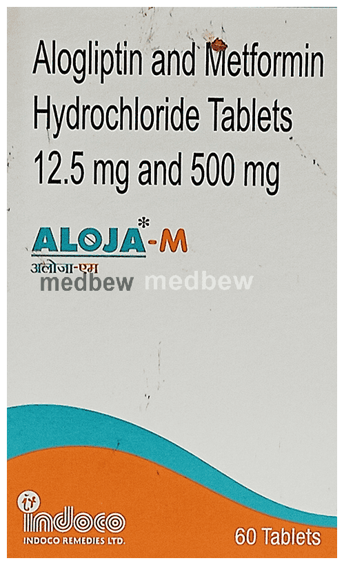 Aloja-M Tablet is normally prescribed when diet and exercise alone or other medicines have not been enough to control your blood sugar level. Your doctor may prescribe it alone or along with other diabetes medicines. It can be taken with or without food. The dose will depend on your condition, and blood sugar levels, but you should use it as advised by your doctor.You should take it regularly, at the same time each day, to get the most benefit and you should not stop unless your doctor recommends it. It is controlling your blood sugar levels and helping to prevent serious complications in the future. It is important to stay on the diet and exercise program recommended by your doctor while taking this medicine. Your lifestyle plays a big part in controlling diabetes.The most common side effect of taking this medicine is a headache. This is usually minor and improves with time. Low blood sugar level (hypoglycemia) is a possible side effect if you are also taking other diabetes medicines like insulin or sulphonylurea, so you need to know how to recognize and deal with it. You can carry sugar or glucose candy to control low blood sugar level. Contact your doctor if the side effects worry you or if they do not go away.Before taking this medicine, let your doctor know if you have ever had kidney disease, heart or pancreas problems, or if you drink a lot of alcohol. Pregnant or breastfeeding women should also consult their doctor before taking it. Some other medicines you are taking may interfere with it so make sure your doctor knows about all the other medicines you are using. Limit your alcohol intake while taking this medicine because it can increase your risk of developing low blood sugar levels. You may need regular tests such as kidney function and blood glucose levels to check that the medicine is working properly.