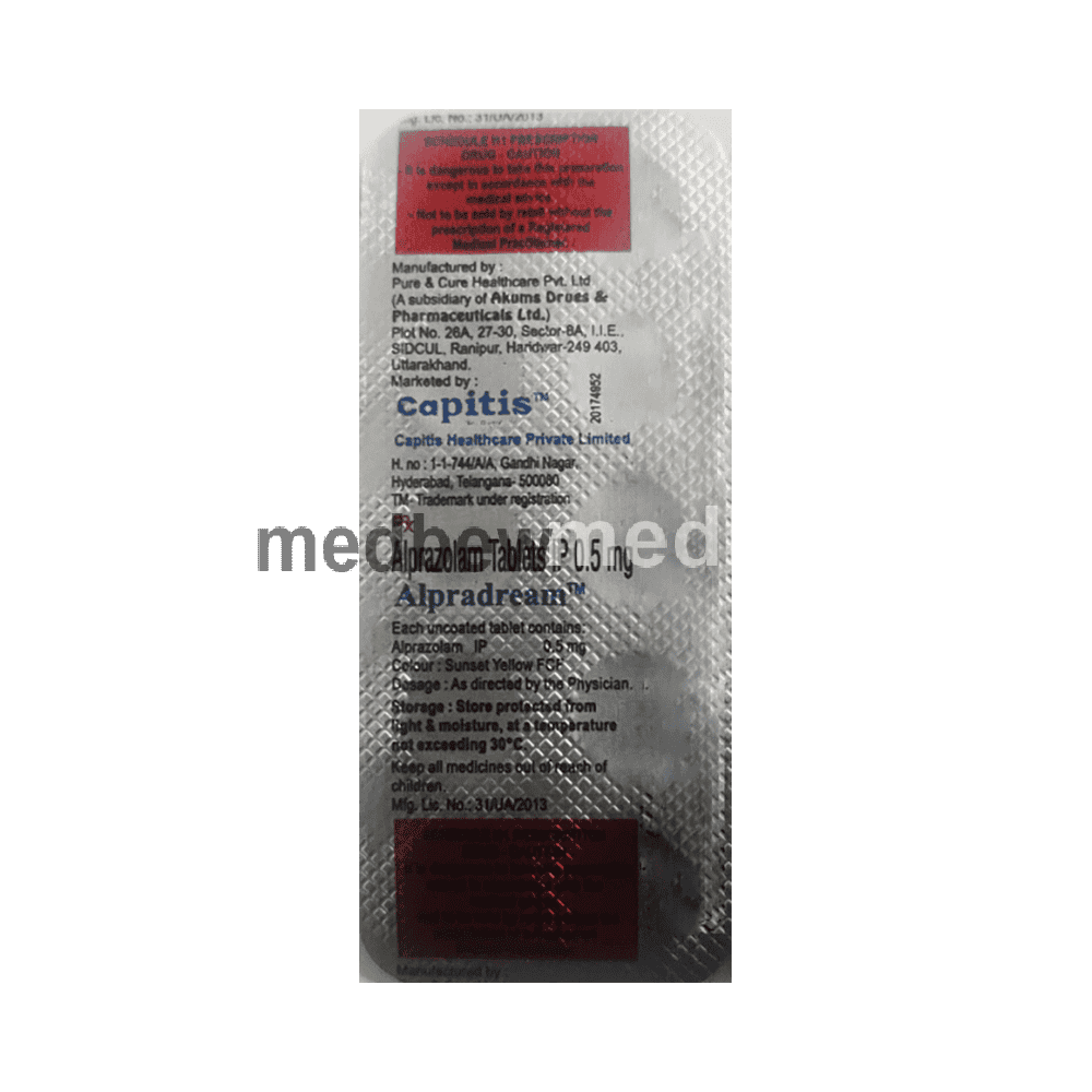 Alpradream Tablet belongs to a class of medicines known as benzodiazepines. It is used to treat anxiety. It alters brain activity, calms it, and provides relief from panic attacks by relaxing the nerves.