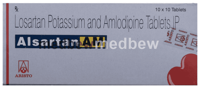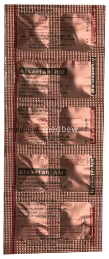 Alsartan AM Tablet contains two medicines, both of which help to control high blood pressure. It lowers the blood pressure by relaxing the blood vessels and making it easier for your heart to pump blood around your body. This will reduce your risk of having a heart attack or a stroke.