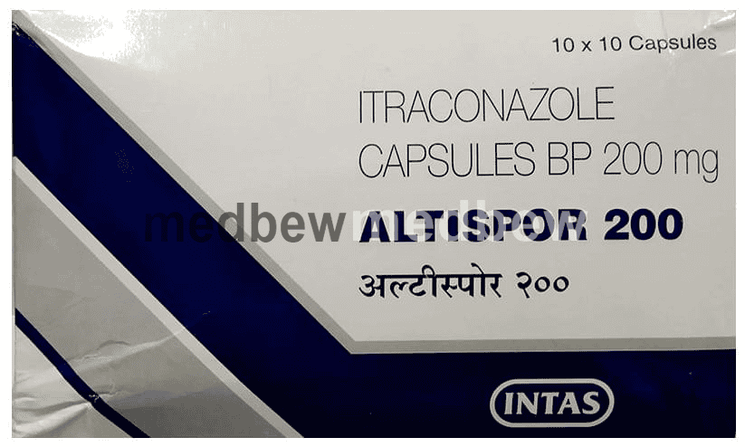 Altispor 200 Capsule belongs to a group of medicines called antifungals. It works by stopping the growth of fungi and is used to treat infections of the mouth, throat, vagina, and other parts of the body including fingernails and toenails. It kills fungi by destroying the fungal cell membrane.