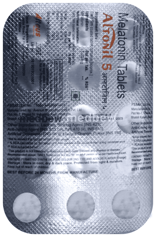 Altonil 5mg Tablet is a natural hormone which regulates the sleep-wake cycle and helps you fall asleep.